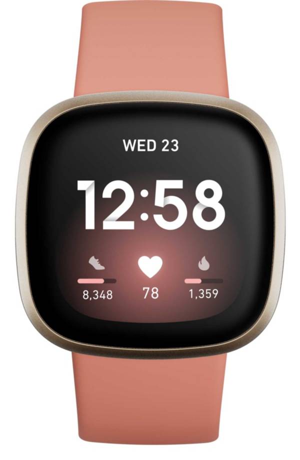 Fitbit Versa 3 Smartwatch Soft Gold Aluminum With Pink Clay Band Target